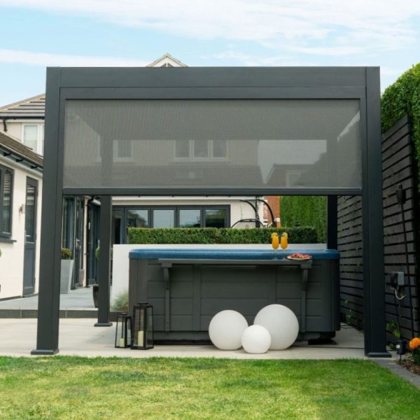 Pérgola 3x3MT Bioclimática Techo de Acero + 2 Pantallas Laterales 3×2