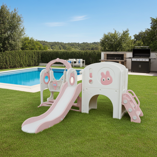 Resbalín 6 en 1 columpio, aro, telescopio, almacenamiento y juego de perforación Rosado